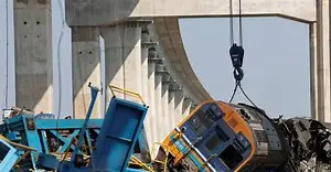 Sumala sa mga awtoridad, ang crane nga nagtrabaho sa usa ka construction site kalit lang natumba ug miigo sa paingoni nga tren hinungdan sa maong aksidente.