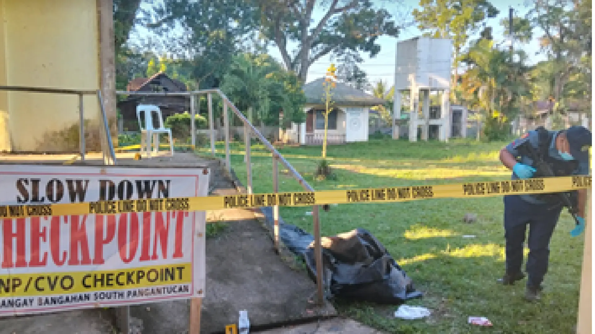 Daling gidala ang biktima sa balay tambalanan samtang ang mga sakop sa Pangantucan Municipal Police Station narekober ang duha ka basiyo sa .45 caliber nga armas gikan sa crime scene.