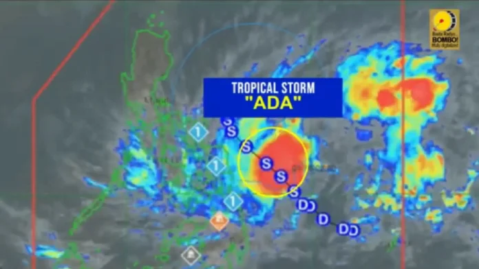 Mas nikusog na ug nahimo nang usa ka tropical storm ang kaniadto’y tropical depression nga si Bagyong Ada. Base sa pinakabag-ong report, ang sentro sa bagyo namatikdan sa gilay-on nga mga 400 kilometro sa sidlakan sa Surigao City, Surigao del Norte.