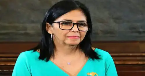 Si Rodríguez mao ang bise presidente sa dihang wala maaresto si Nicolas Maduro sa U.S. Ang 56-anyos nga interim president usa ka lumad sa Caracas ug anak ni Jorge Antonio Rodríguez, ang lider sa Marxist movement sa Venezuela ug magtutukod sa Socialist League.