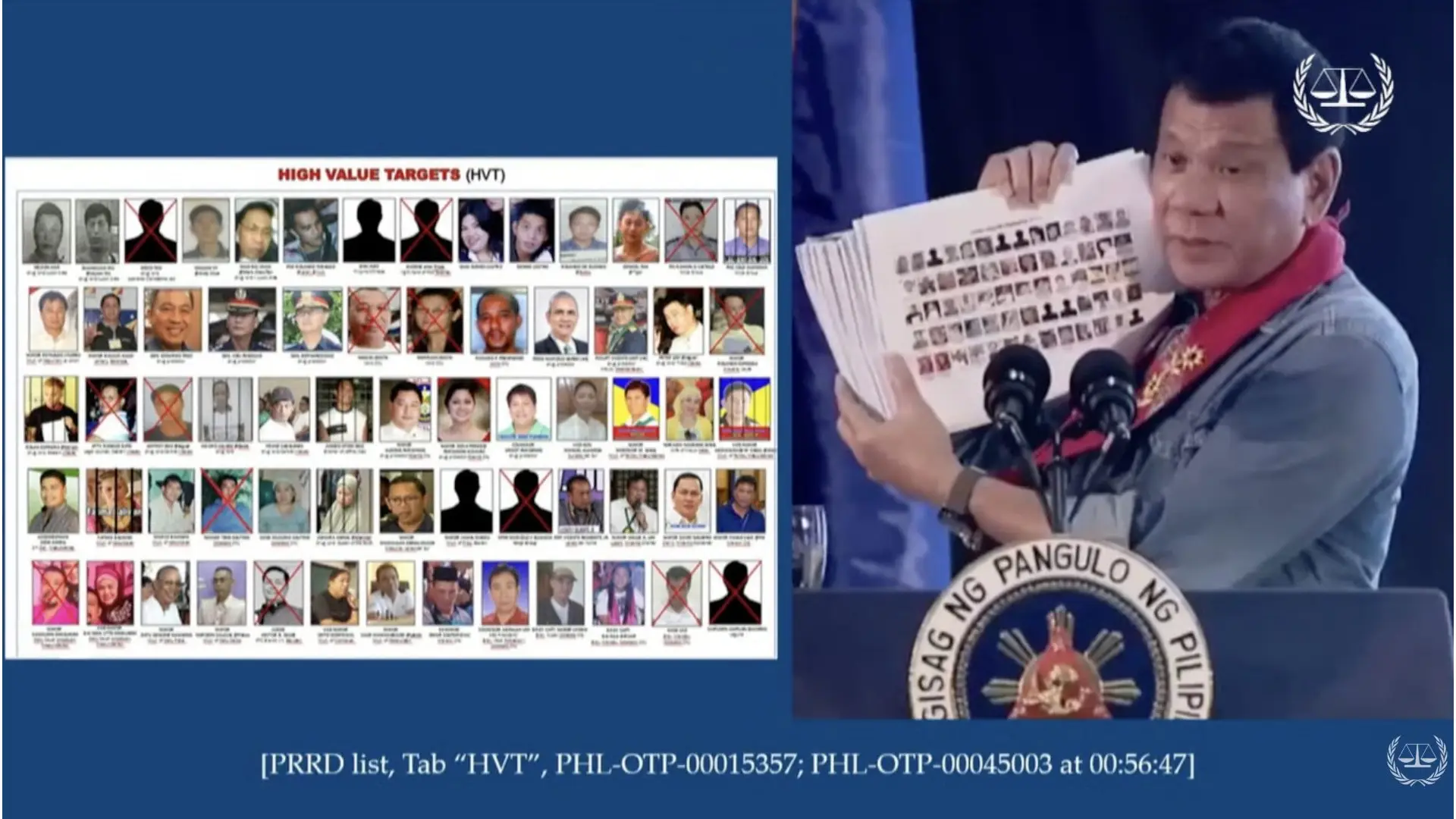 Sa ikaduhang adlaw sa hearing sa International Criminal Court (ICC), gipresentar sa prosekusyon ang gitawag nga “Kill List” o ang listahan sa mga pangalan nga giingong nalambigit sa droga nga gipasigarbo ni kanhi Presidente Rodrigo Duterte.