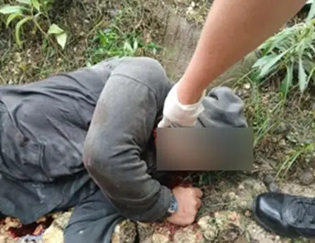 Mga 300 metros gikan sa motorsiklo, nadiskubrehan sa imbestigador ang lawas sa lalaki nga naghigda daplin sa barangay road.
