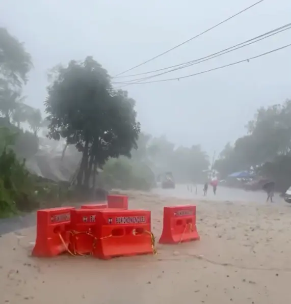 Miawas ang tubig baha sa kanal sa kamulo pa nga giconstruct nga dalan sa Overview, Barangay Palacapao, Quezon, Bukidnon kagahapon sa hapon, Oktubre 24, 2025.
