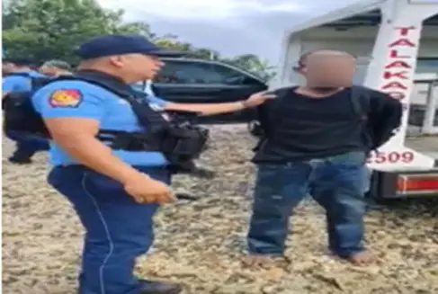 Sa pag-abot sa mga pulis, giila ang 36 anyos nga suspek ug nakuha gikan sa niini ang usa ka 9mm pistol nga walay marka, adunay magasin ug usa ka buhing bala.
